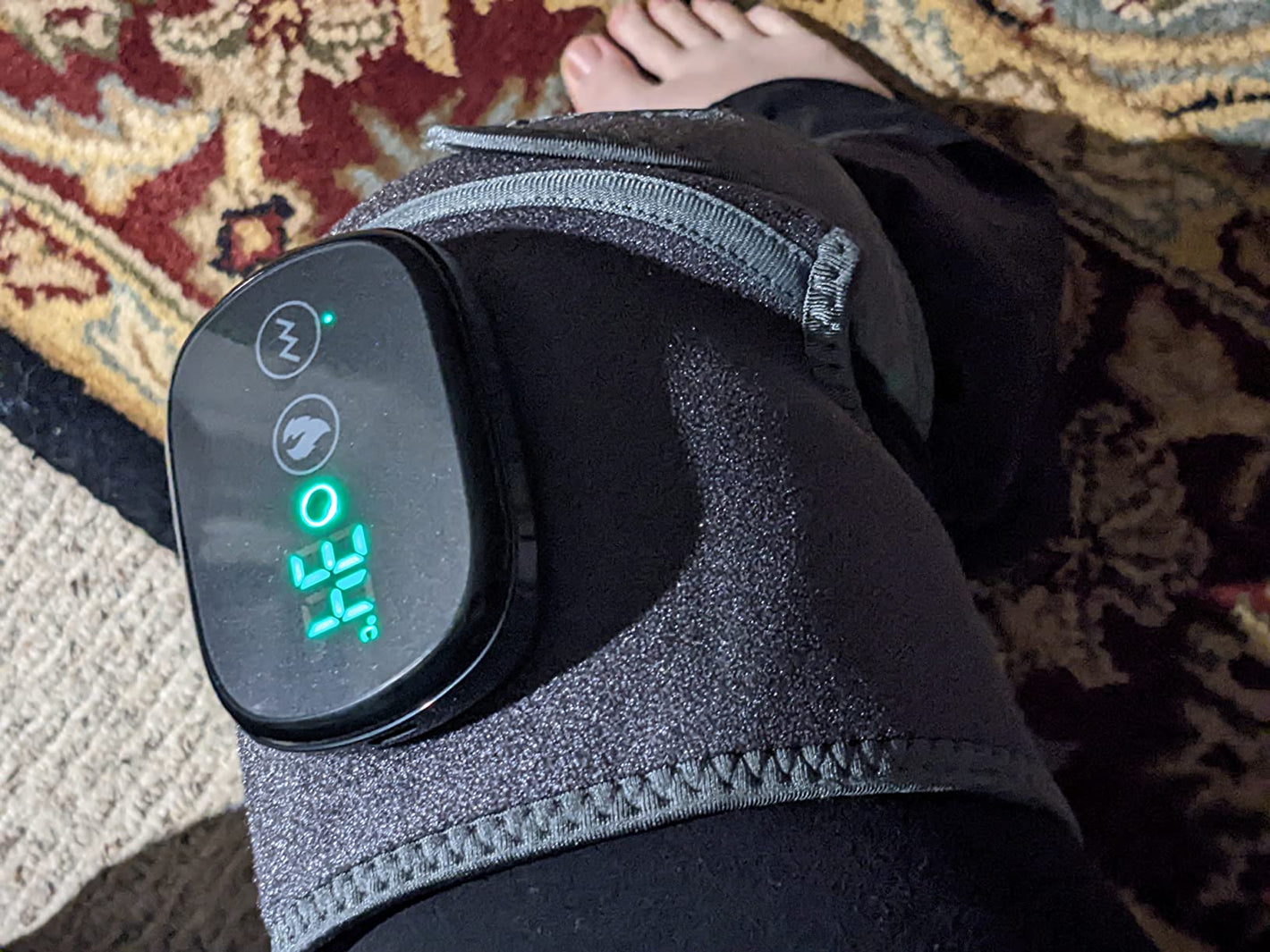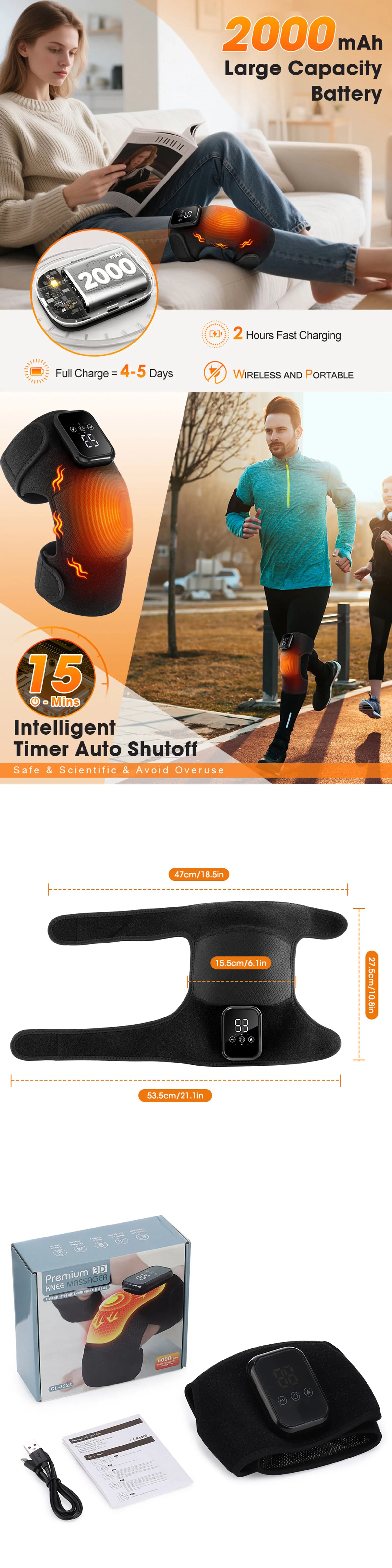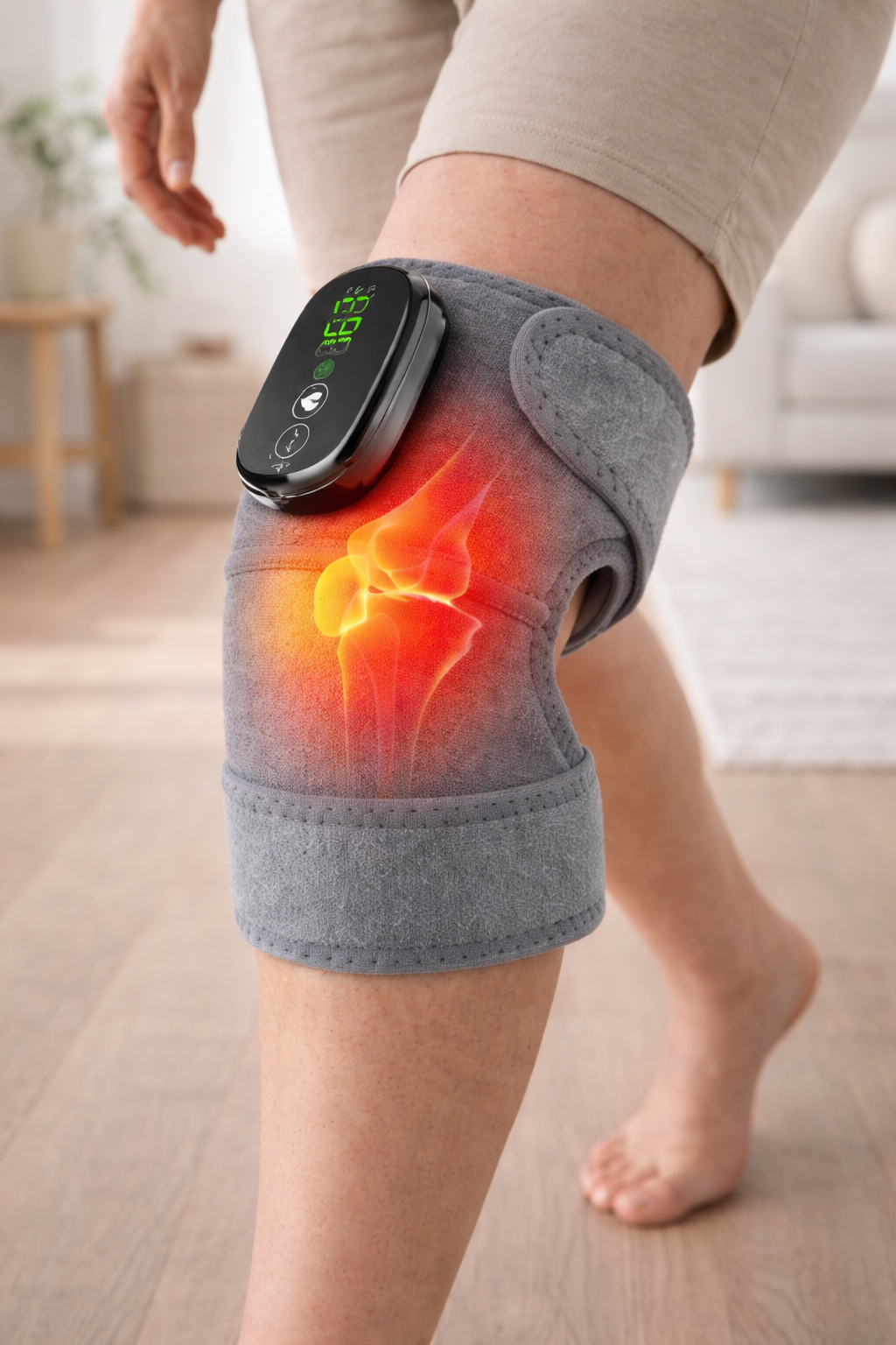 It combines targeted heat and gentle massage to help increase blood flow, relax surrounding muscles, and reduce stiffness around the knee joint.